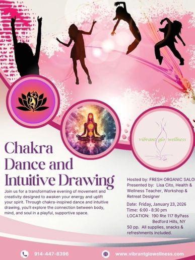 Awaken your energy and uplift your spirit through this transformative evening of movement and creativity. Lisa will guide you through a chakra-inspired dance and intuitive drawing session to explore the connection between body, mind, and soul in a playful and supportive space.